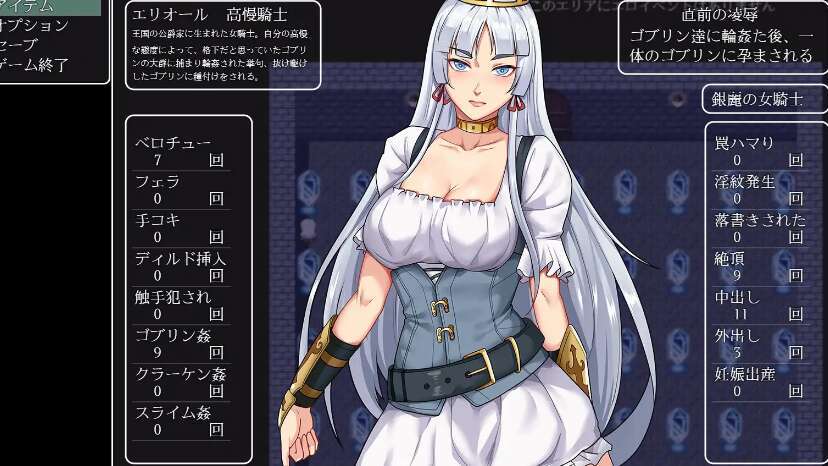 出身于贵族家庭的女骑士艾莉奥尔赫名鼎鼎,为了击败哥布林而前往一处废矿。由于对自己的实力过于自信而傲慢,结果在废矿中输给了一只有伤疤的哥布林,并失去了意识。当她感到一丝不对劲时醒来,发现自己被一只哥布林凌乱地侵犯着。在被哥布林侵犯之后,她离开小屋,却发现自己处于废矿的最深处。艾莉奥尔虽然被坑道中的怪物所侵犯,但还是试图逃离回到地面。◆RPG