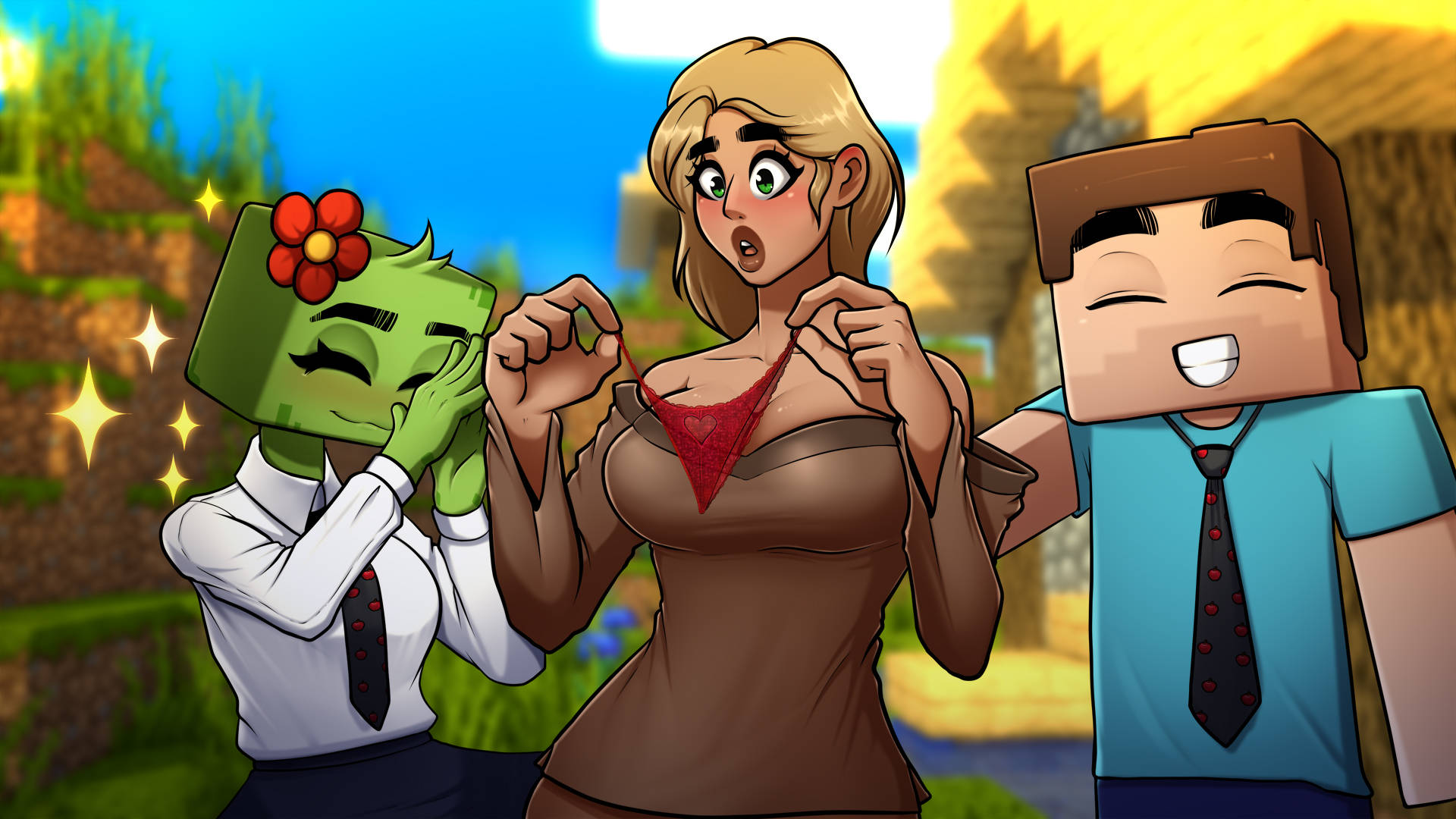 欢迎来到 HornyCraft 游戏世界!这是一款 18+ 粉丝模仿游戏,您必须扮演一个名叫史蒂夫的人,他生活在一个立方体世界中。这个世界充满了许多粗俗的东西,一定要注意!